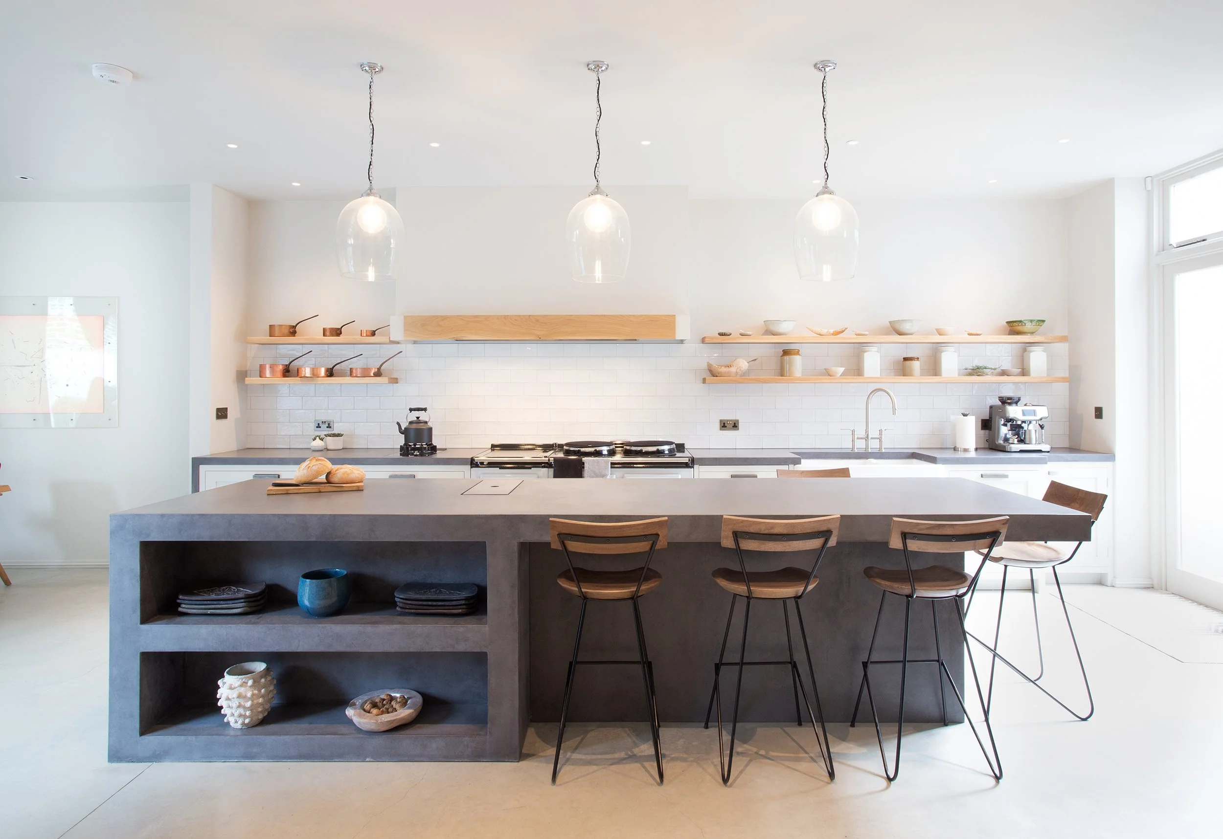 On the edge of Clapham Common, we renovated and extended a large Victorian Villa styled house, providing superb living accommodation with spacious open-plan areas ideal for family life and for entertaining. Polished Concrete has been used extensively, including on a robust kitchen island unit of heroic proportion.