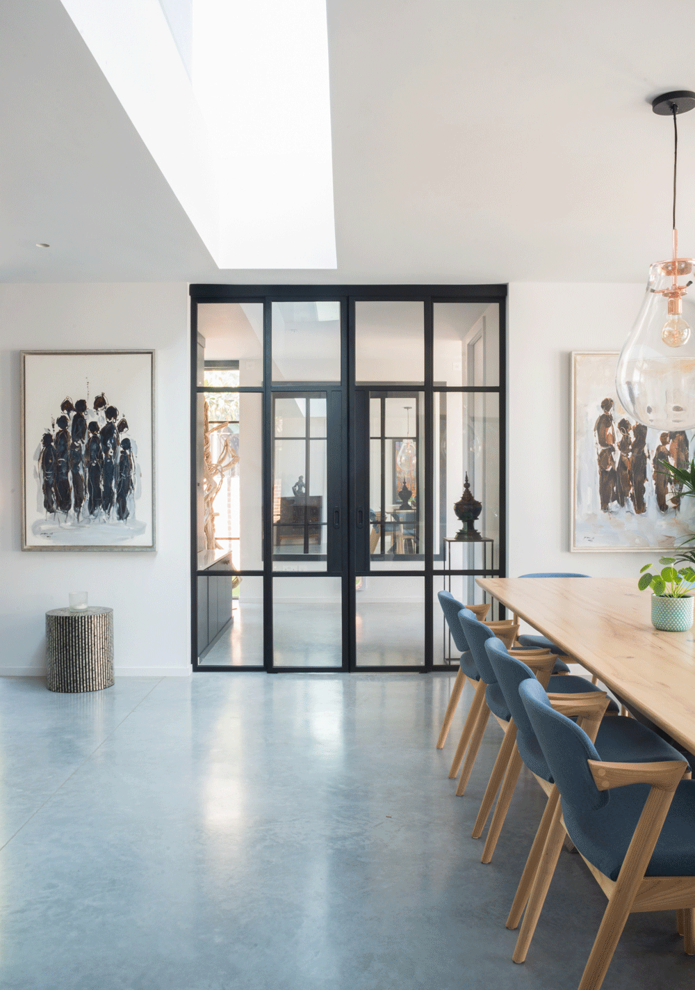 Concrete is a theme in the house, and to reinforce the open plan nature of the property, we have used polished concrete floors throughout to unify all the various zones and to create a genuine homogeneity to the fabric of the house.