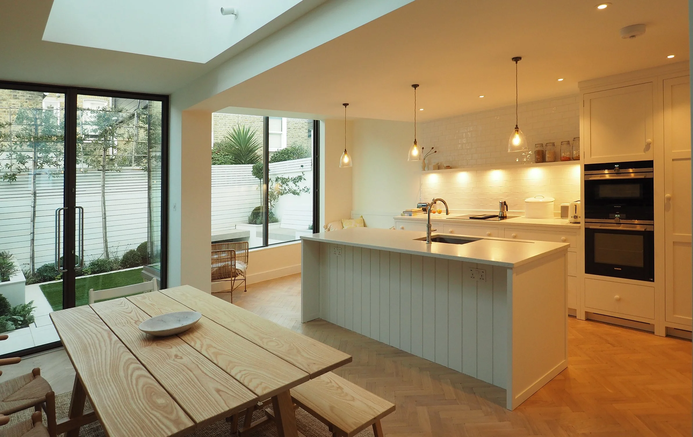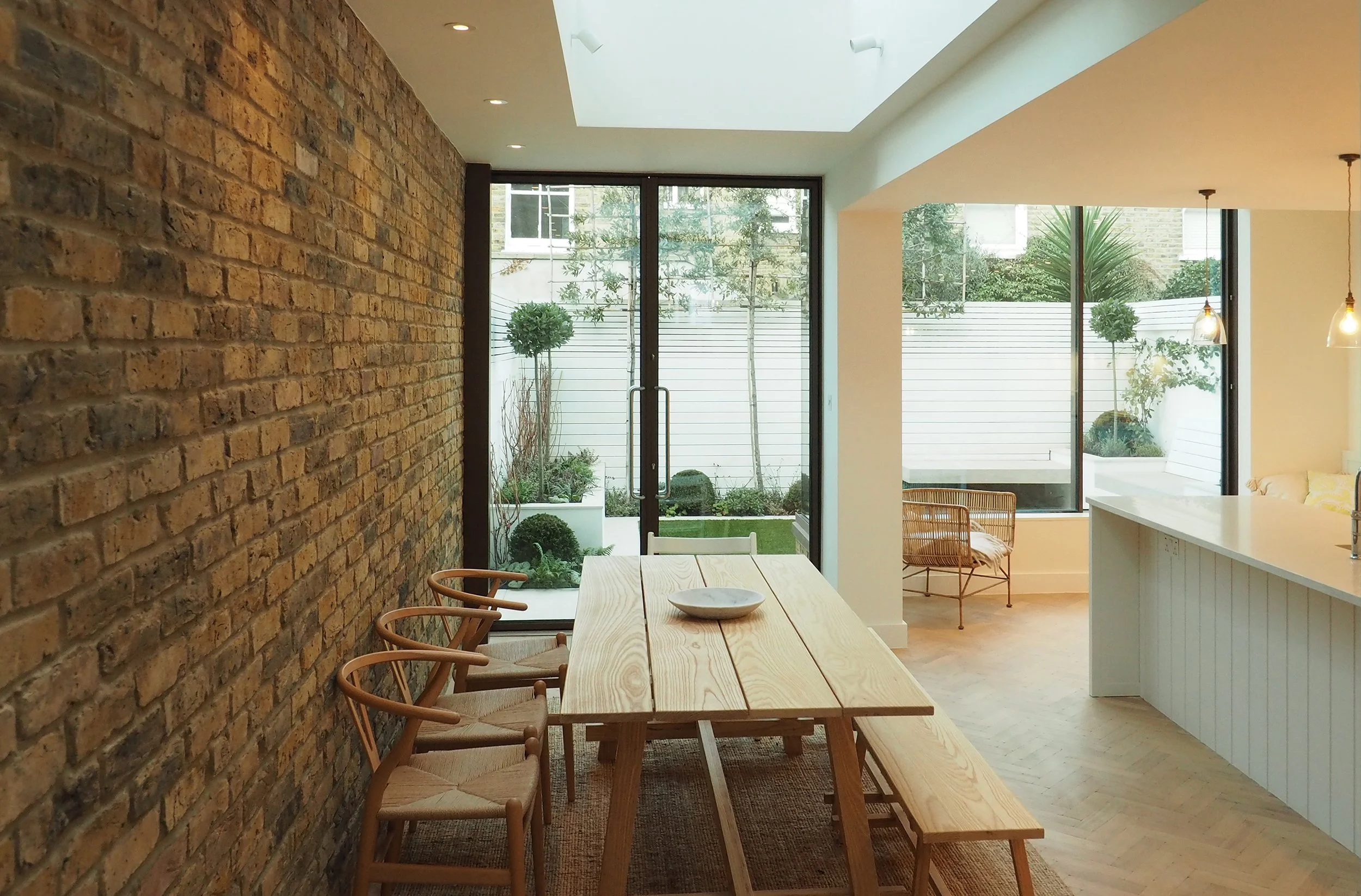 In Parma Crescent, close to Clapham Junction, we redesigned and organised the ground floor of a terrace house, including a rear and side extension and garden.