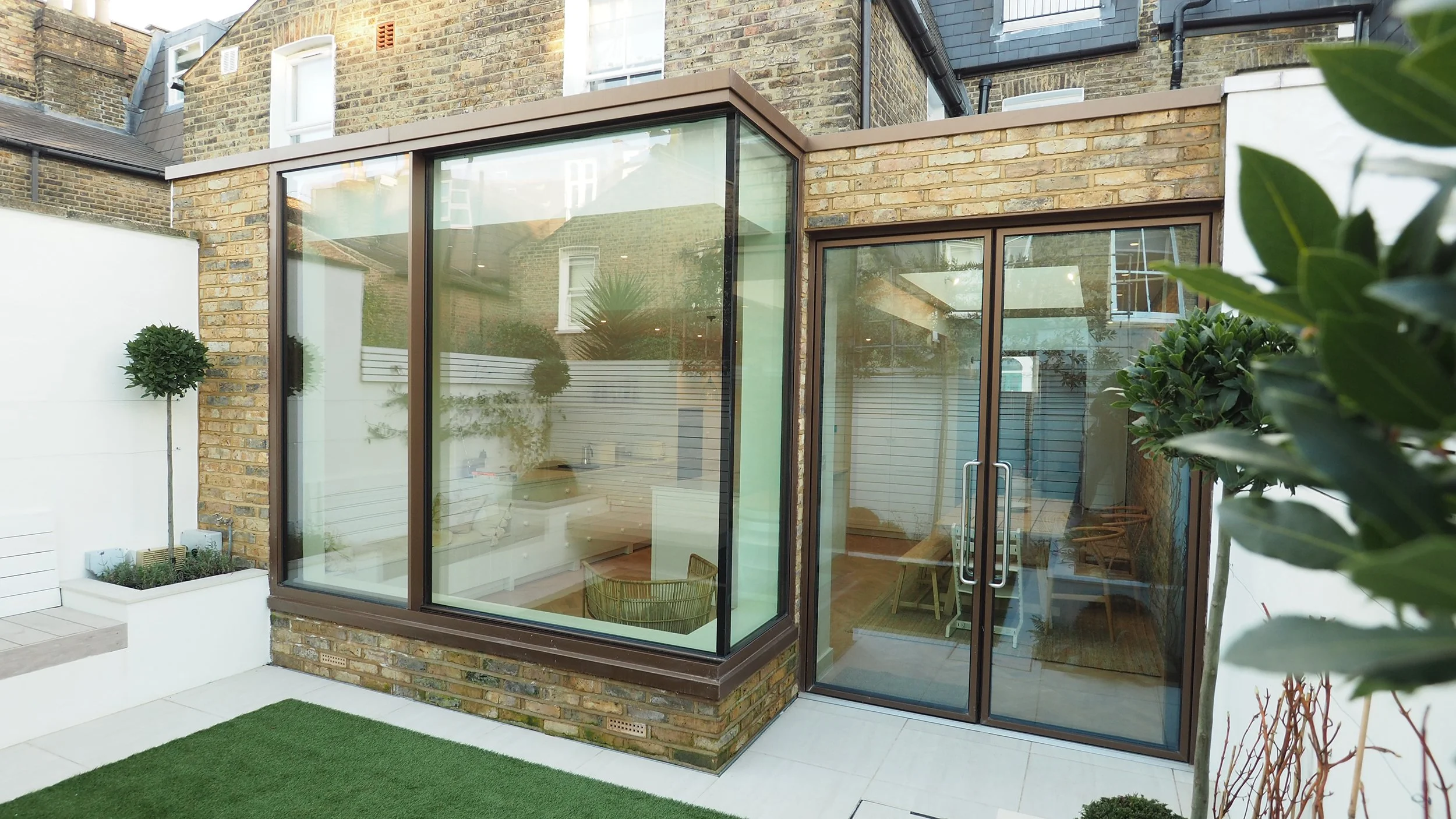 We transformed a series of small awkward rooms into a free-flowing open plan arrangement of seemingly much larger spaces. The garden has been incorporated into the whole scheme (by the Landscape firm Harrington Porter) to create an holistic approach to the footprint of the house. Warm natural tones of fair-faced brickwork and bronze have been employed to instil the house with both quality and warmth.